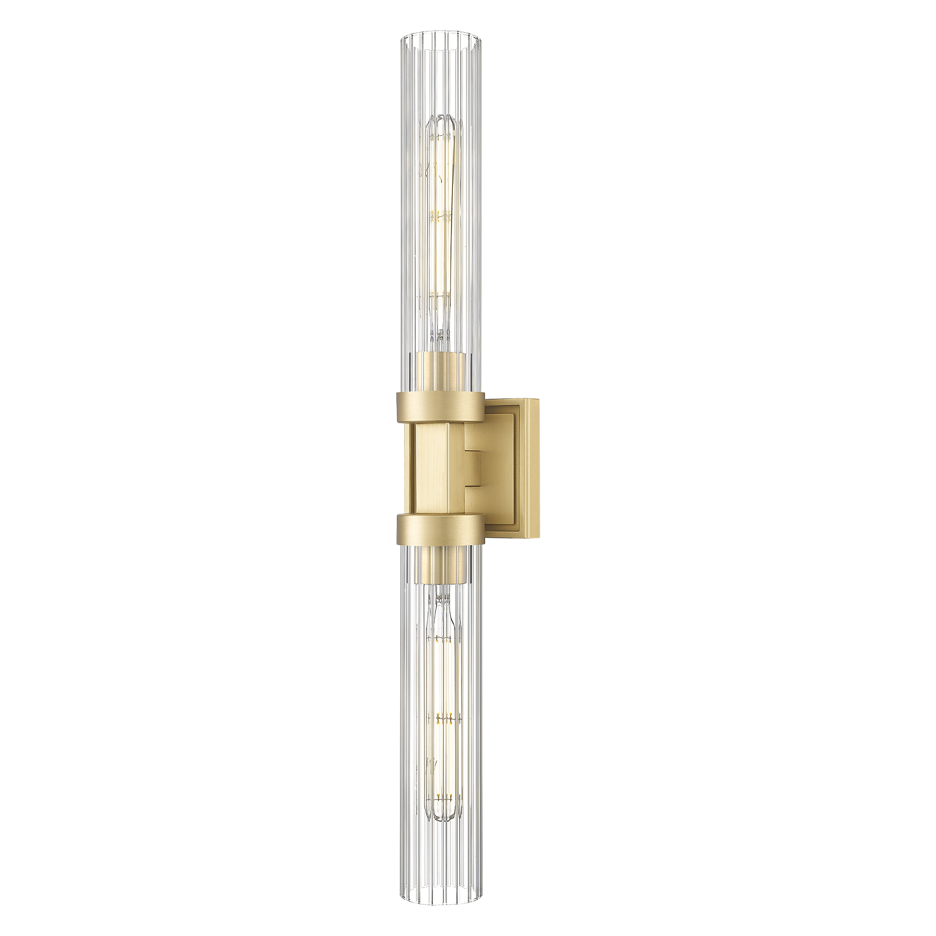 Podwójny kinkiet QUINCY W02897BR to rozwiązanie dla wymagających przestrzeni. Dwa punkty świetlne na eleganckim, mosiężnym stelażu zapewniają dwukrotnie więcej światła i stylu, wprowadzając do wnętrza symetrię i luksus.