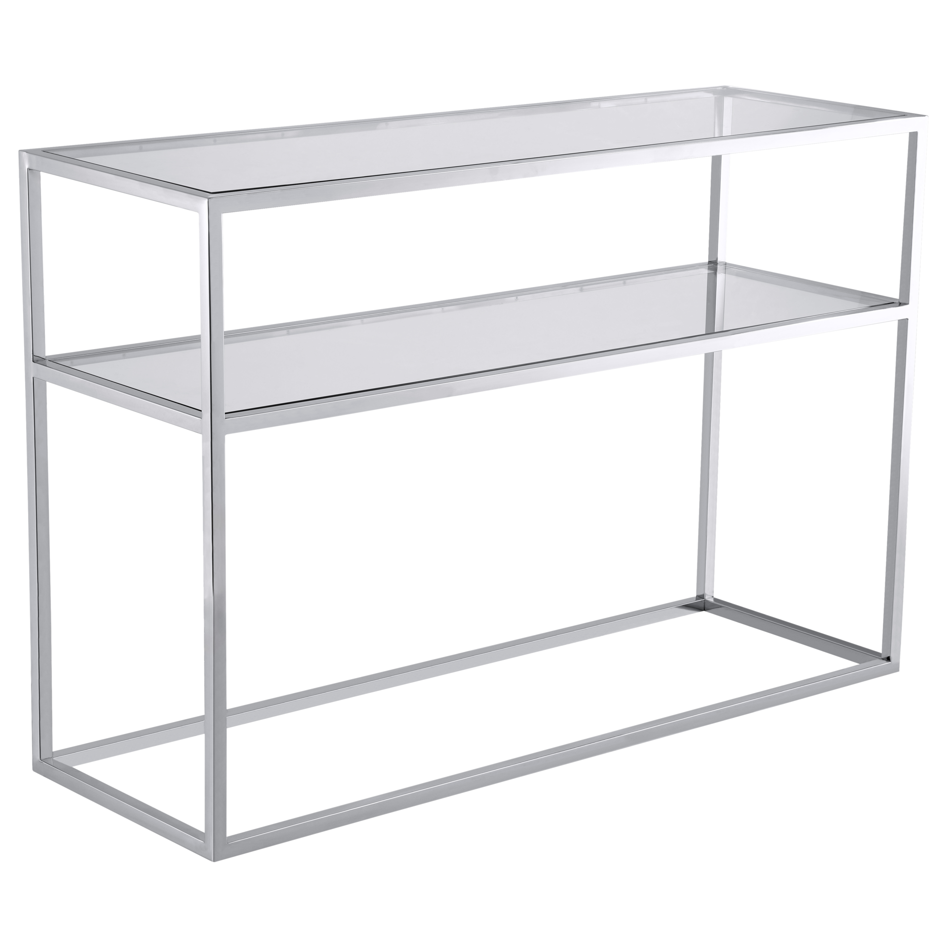 Konsola Bristol to ciekawa propozycja do wnętrz w stylu nowojorskim, modern classic. Konsola oprócz swojej prostej ale eleganckiej formy jest również funkcjonalna dzięki zastosowanej półce. Konsola została wykonana z polerowanej stali nierdzewnej, wykończonej na wysoki połysk, natomiast blat oraz półka wykonane z transparentnego, hartowanego szkła. Dostępna jest również w kolorze złotym.