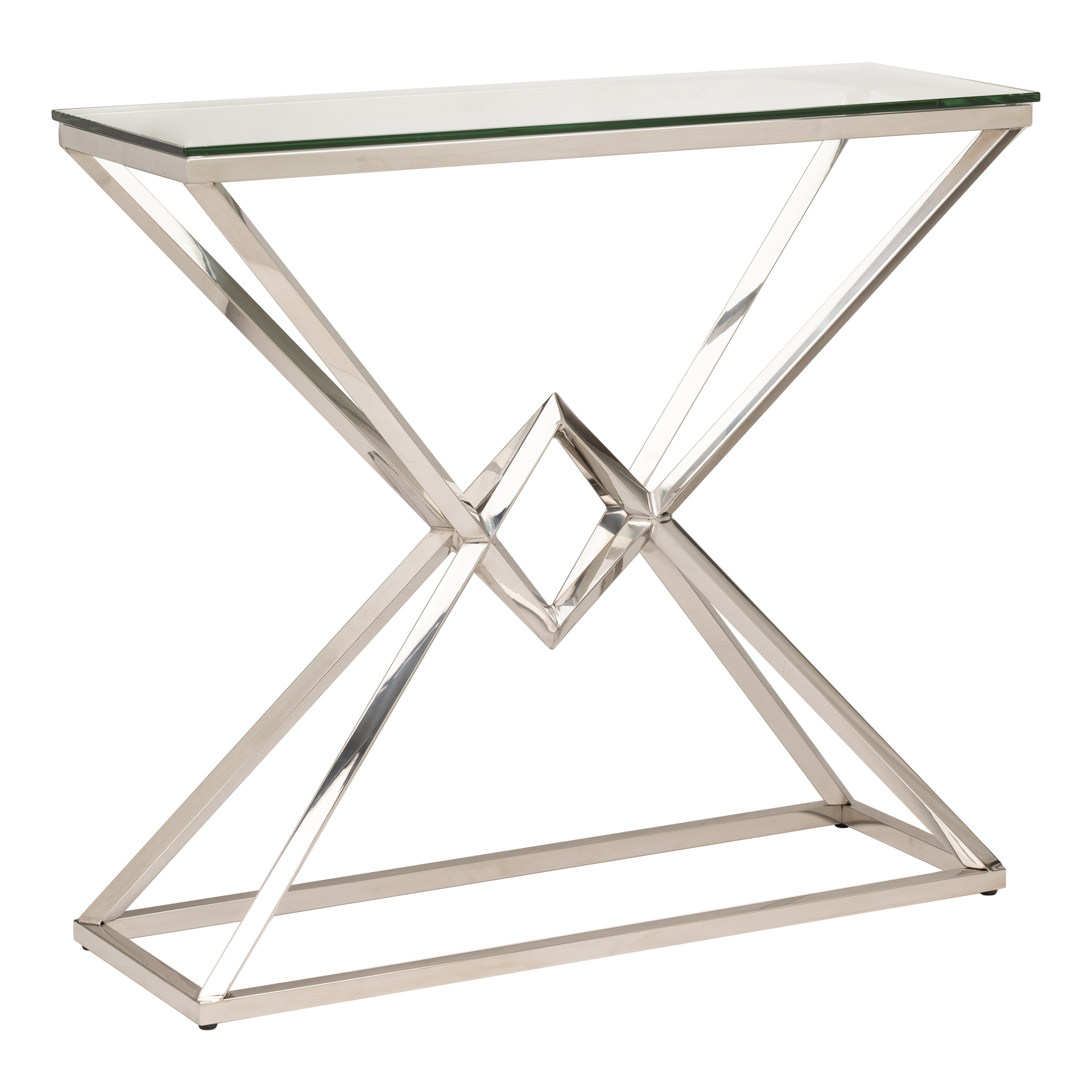 Mniejsza konsola z bestsellerowej seri Grand została zaprojektowana z myślą o stylach Hamptons i New York Classic. Szerokość oraz głębokość zostały zmniejszone z myślą o mniejszych pomieszczeniach oraz mieszkaniach. Konsola z kolekcji Grand wykonana jest z polerowanej stali nierdzewnej, wykończonej w kolorze srebrnym o wysokim połysku. Blat ze szkła hartowanego w kolorze transparentnym.