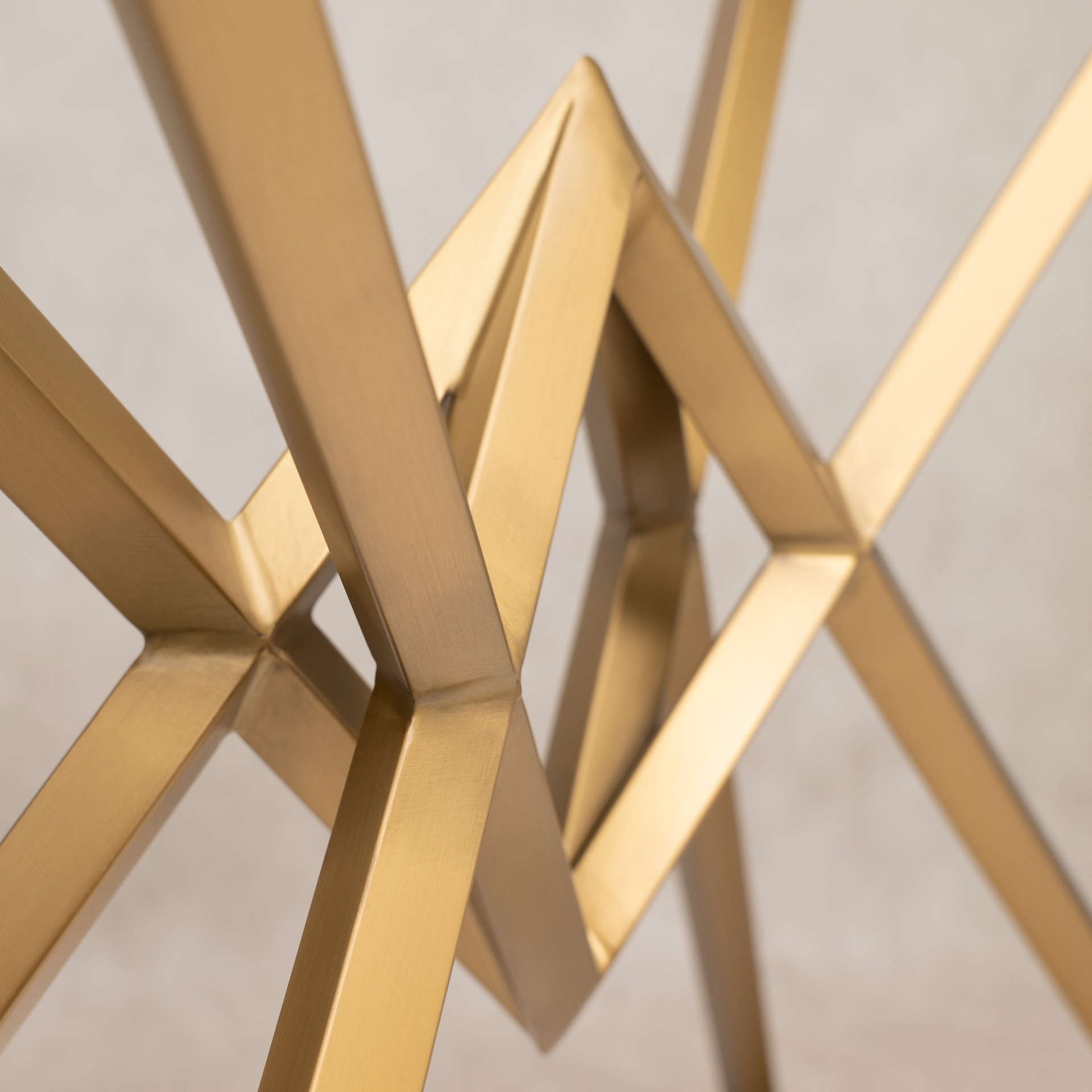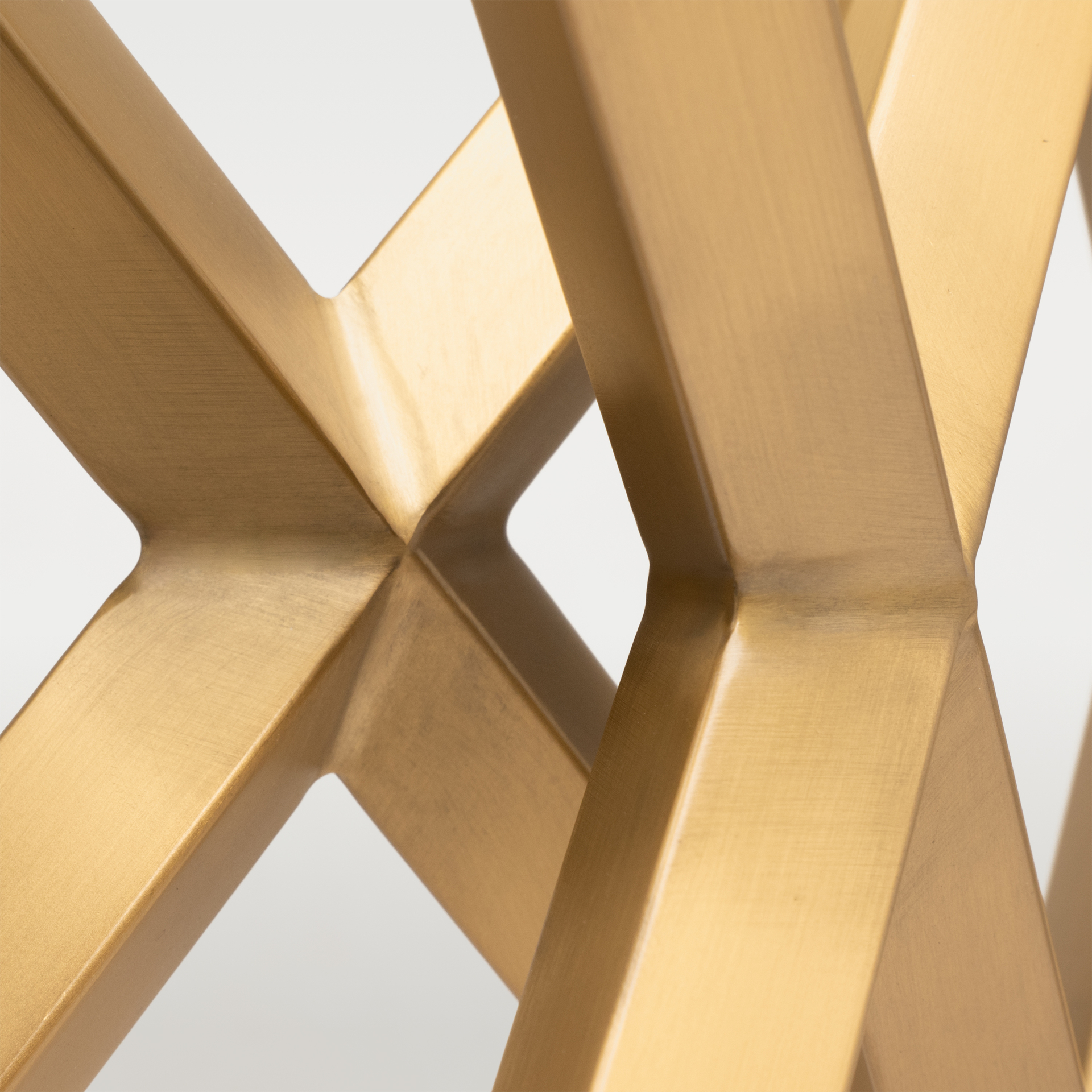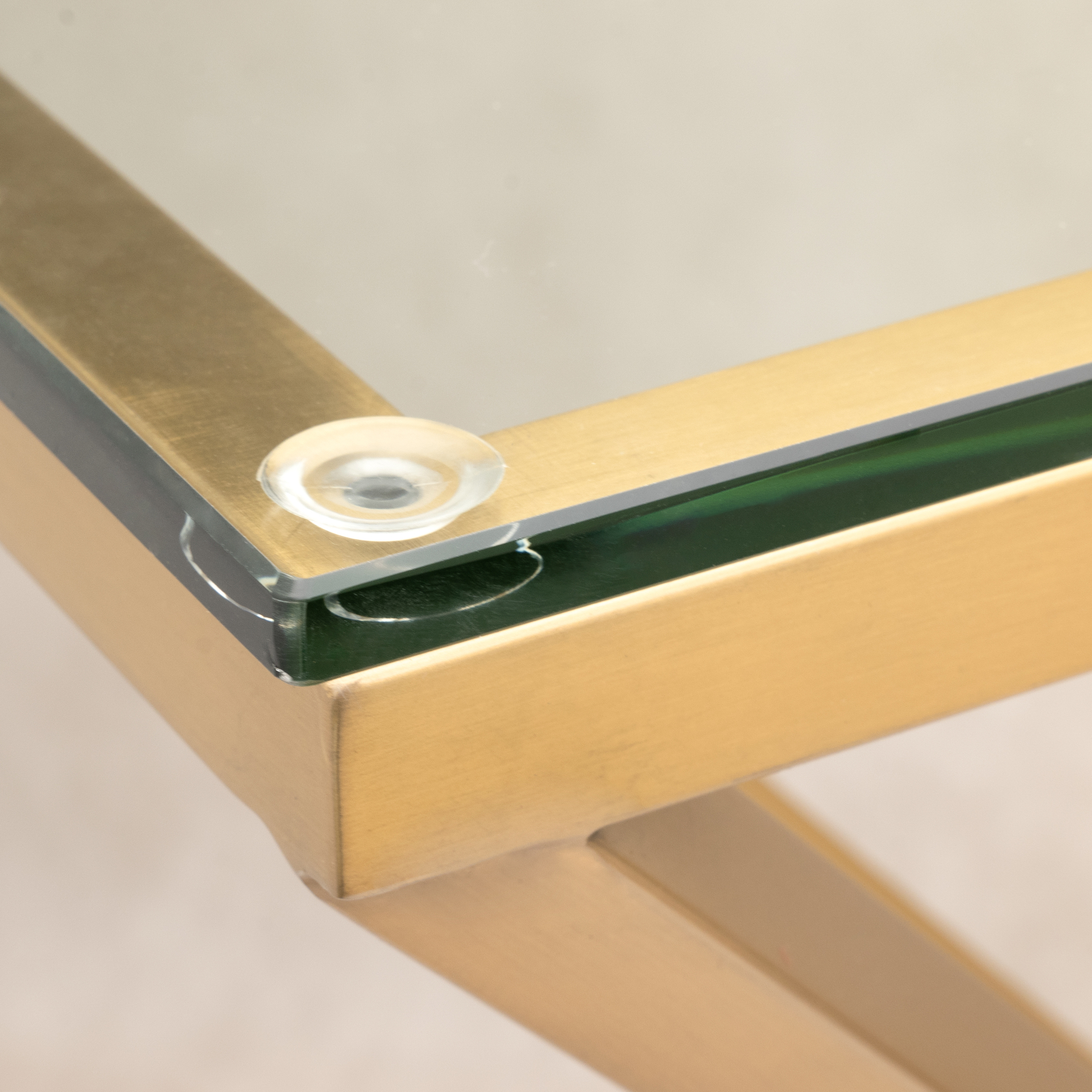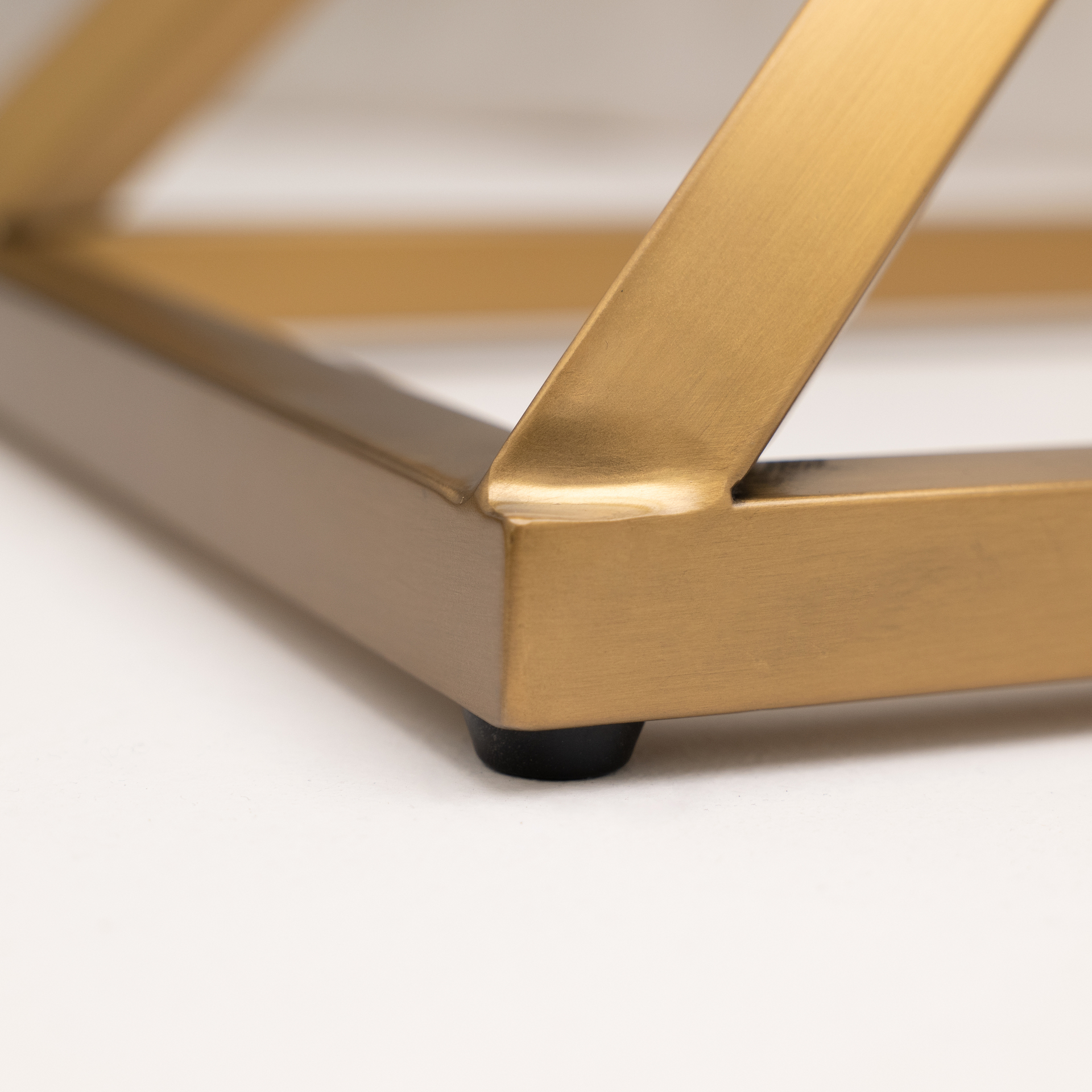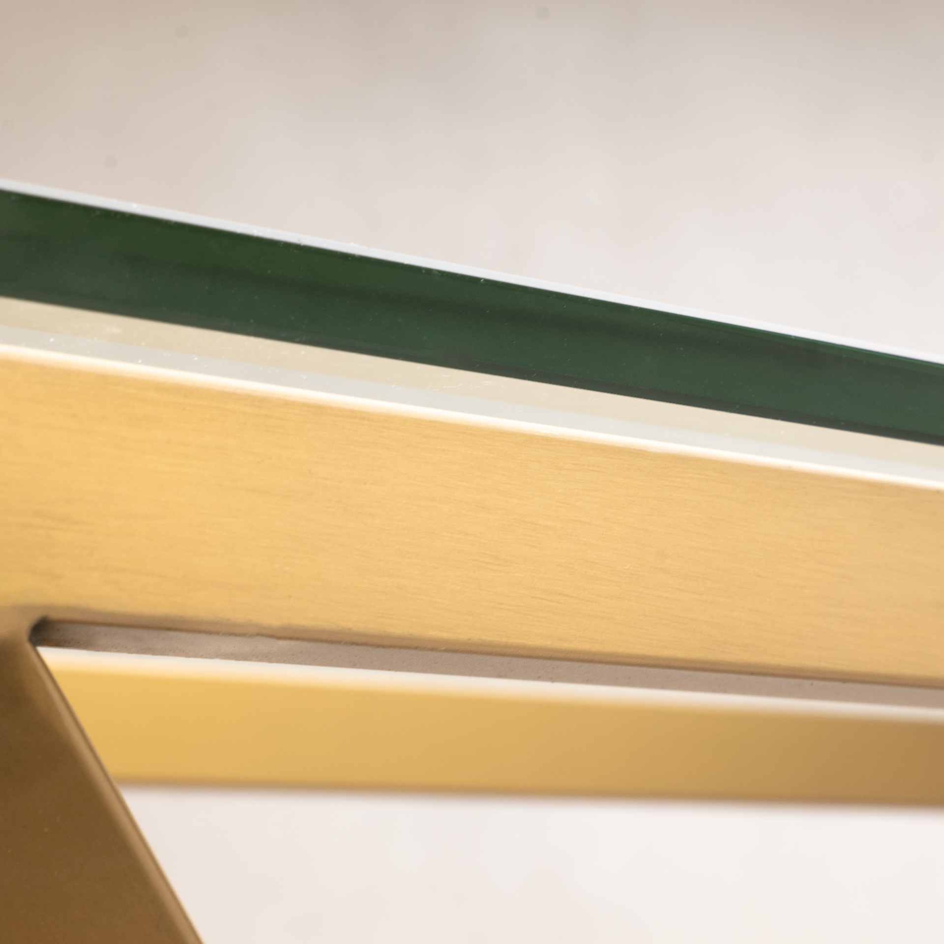 Mniejsza konsola z bestsellerowej seri Grand została zaprojektowana z myślą o stylach Hamptons i New York Classic. Szerokość oraz głębokość zostały zmniejszone z myślą o mniejszych pomieszczeniach oraz mieszkaniach. Konsola z kolekcji Grand wykonana jest ze szczotkowanej stali nierdzewnej, wykończonej w kolorze mosiądzu. Blat ze szkła hartowanego w kolorze transparentnym.