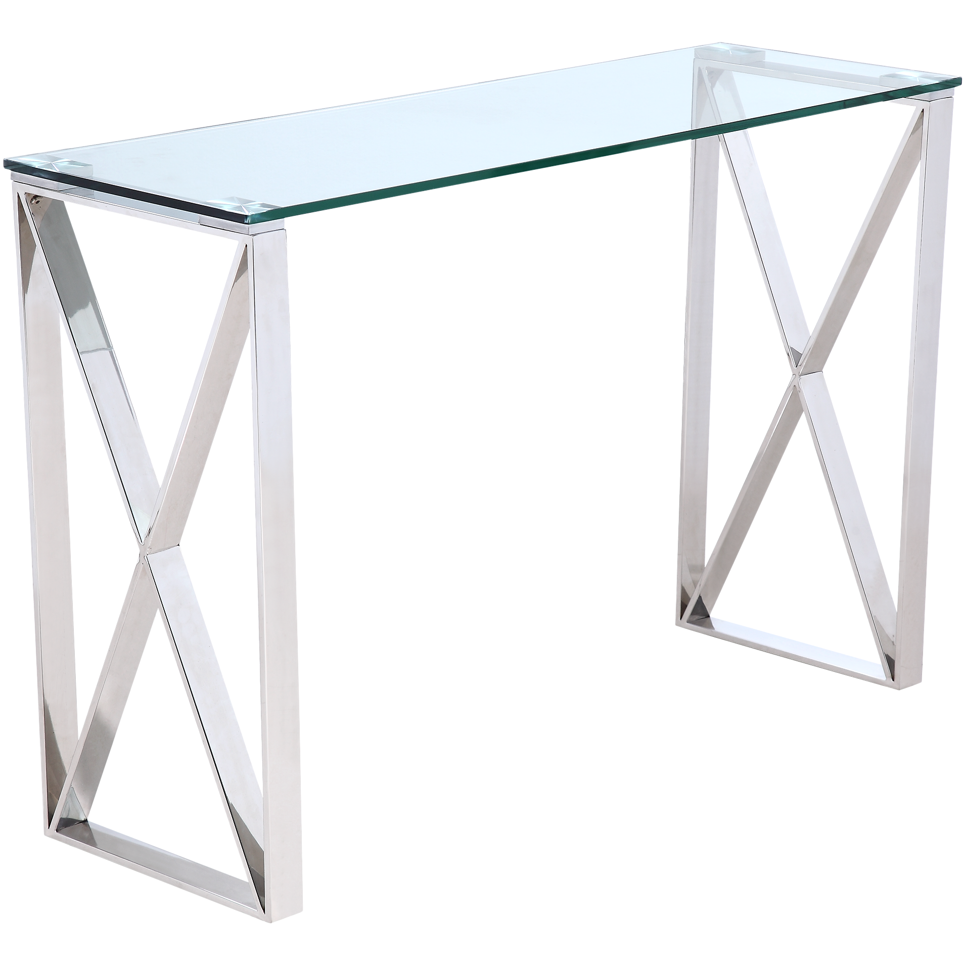 Konsola Manhattan to lekka ale bardzo elegancka forma, która pięknie wypełni każde wnętrze w stylu nowojorskim. Podstawa konsoli Manhattan wykonana jest polerowanej stali nierdzewnej, a blat z bezpiecznego, hartowanego, transparentnego szkła.