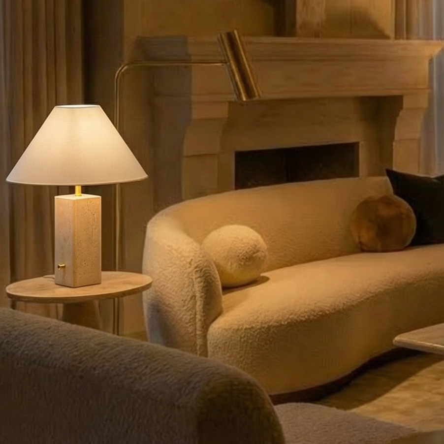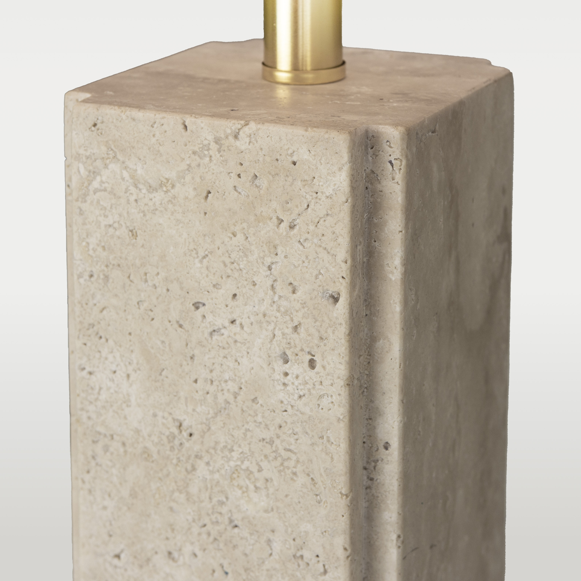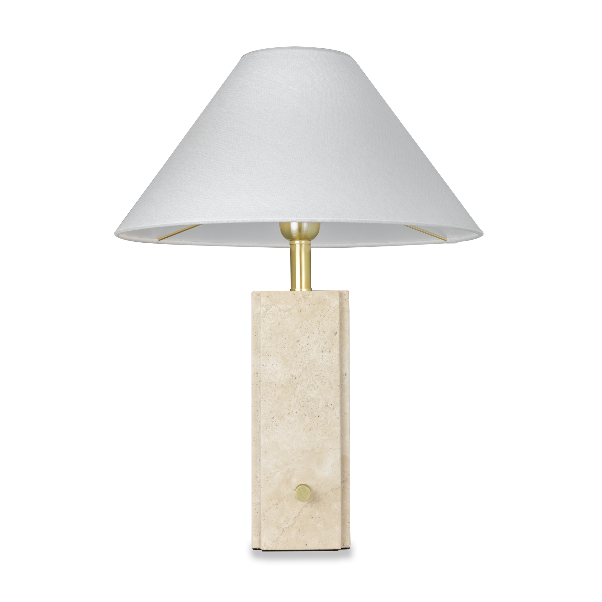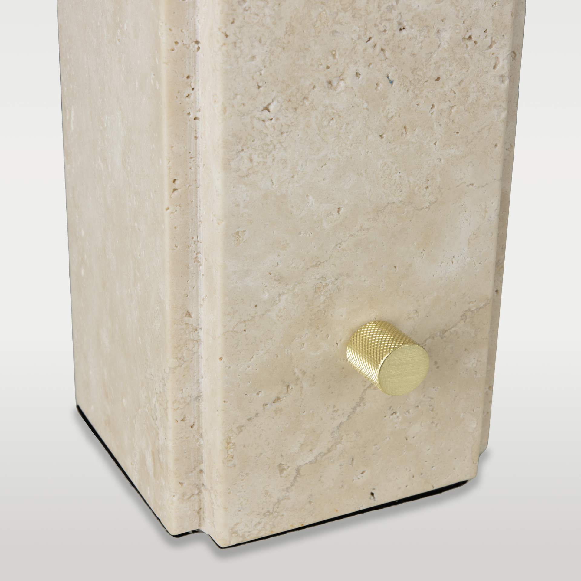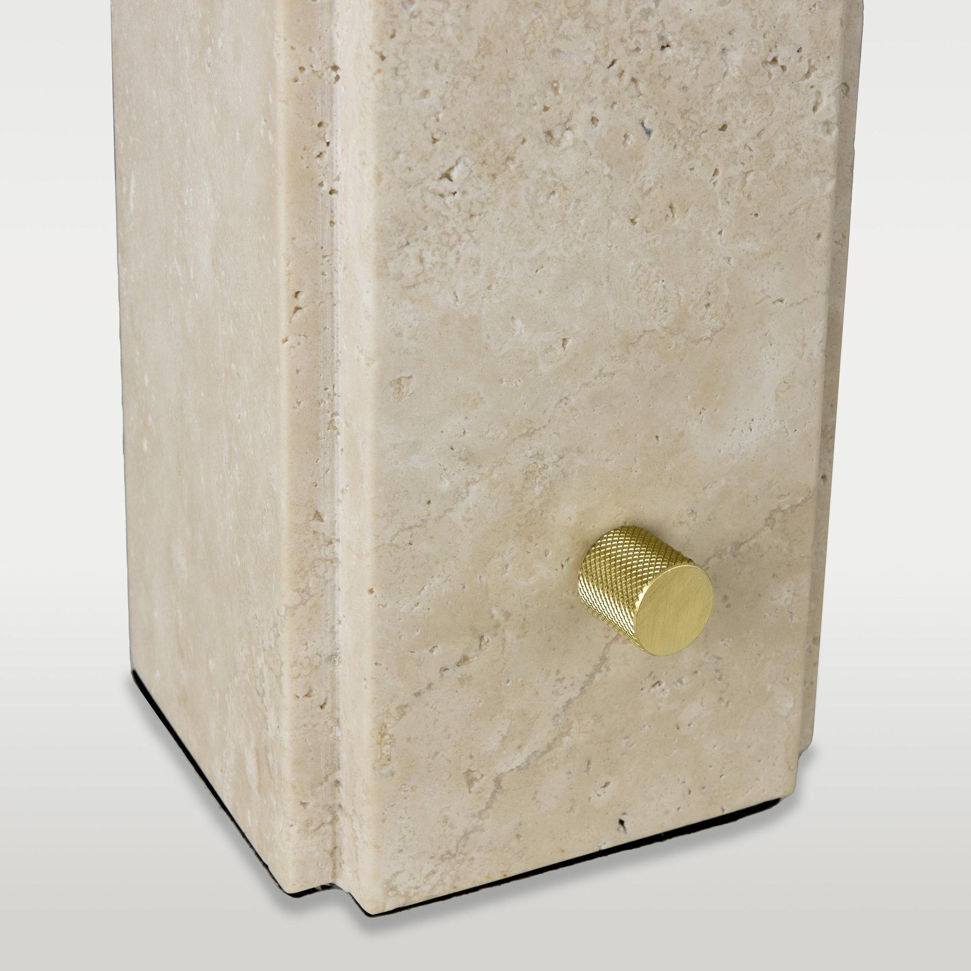 Wprowadź do swojego wnętrza elegancję i funkcjonalność dzięki lampie stołowej, która łączy naturalne piękno trawertynu z ponadczasowym designem.