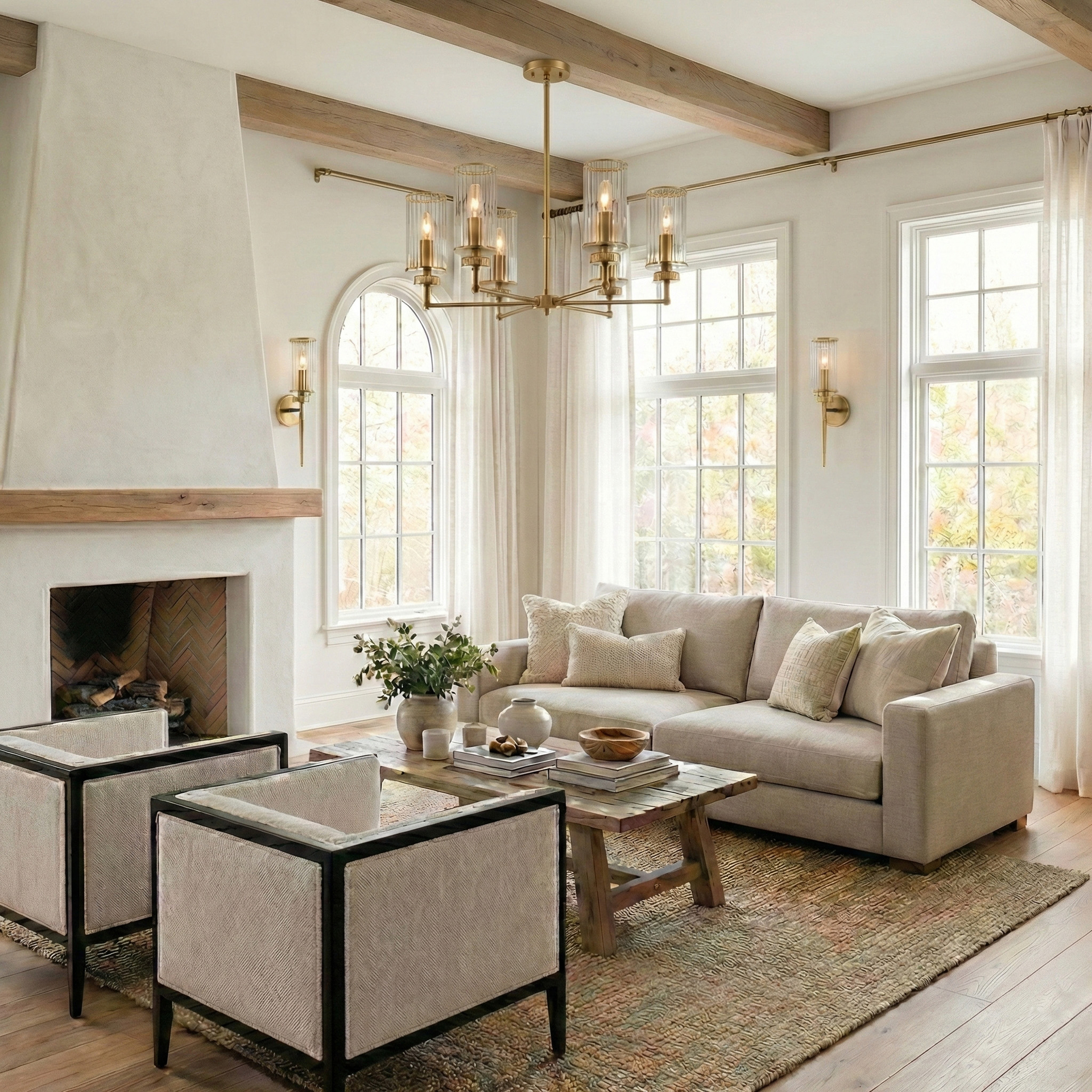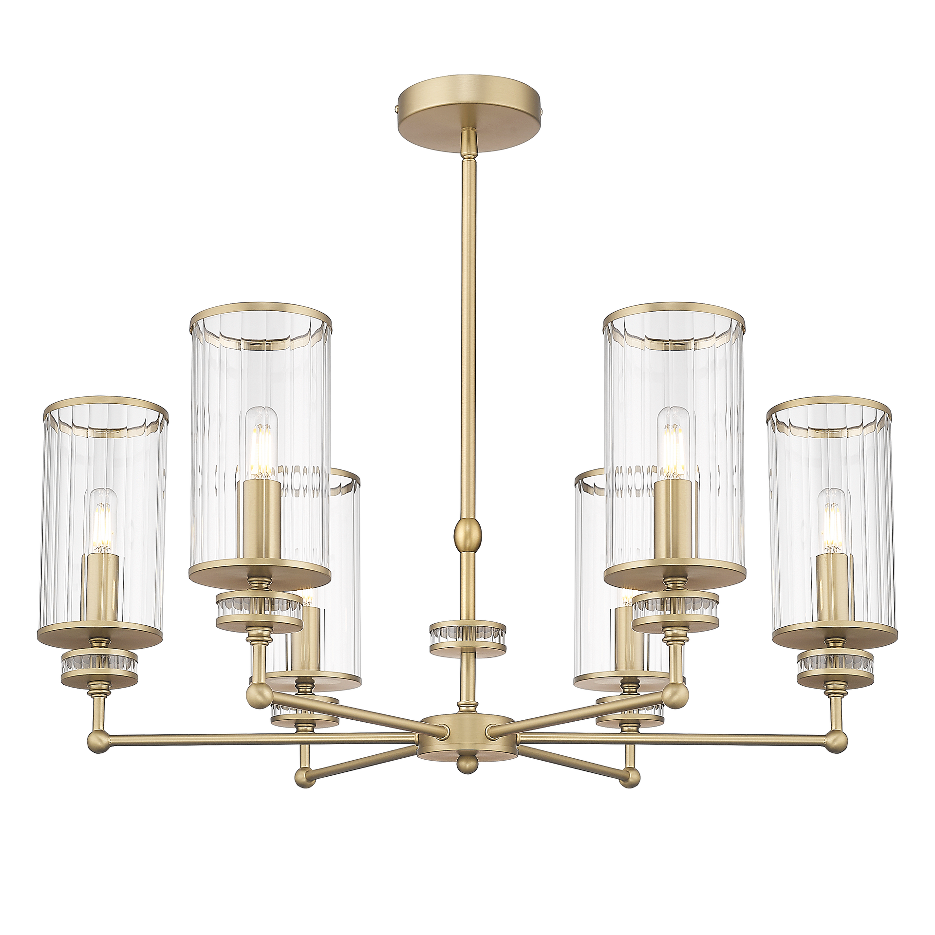 Lampa wisząca HAVEN P06798BR to mistrzowska gra fakturą i światłem. Połączenie minimalistycznego stelaża w wykończeniu szczotkowanego mosiądzu z kloszami o falowanej, ryflowanej strukturze sprawia, że oprawa staje się biżuteryjną ozdobą wnętrza, nawet gdy jest wyłączona.