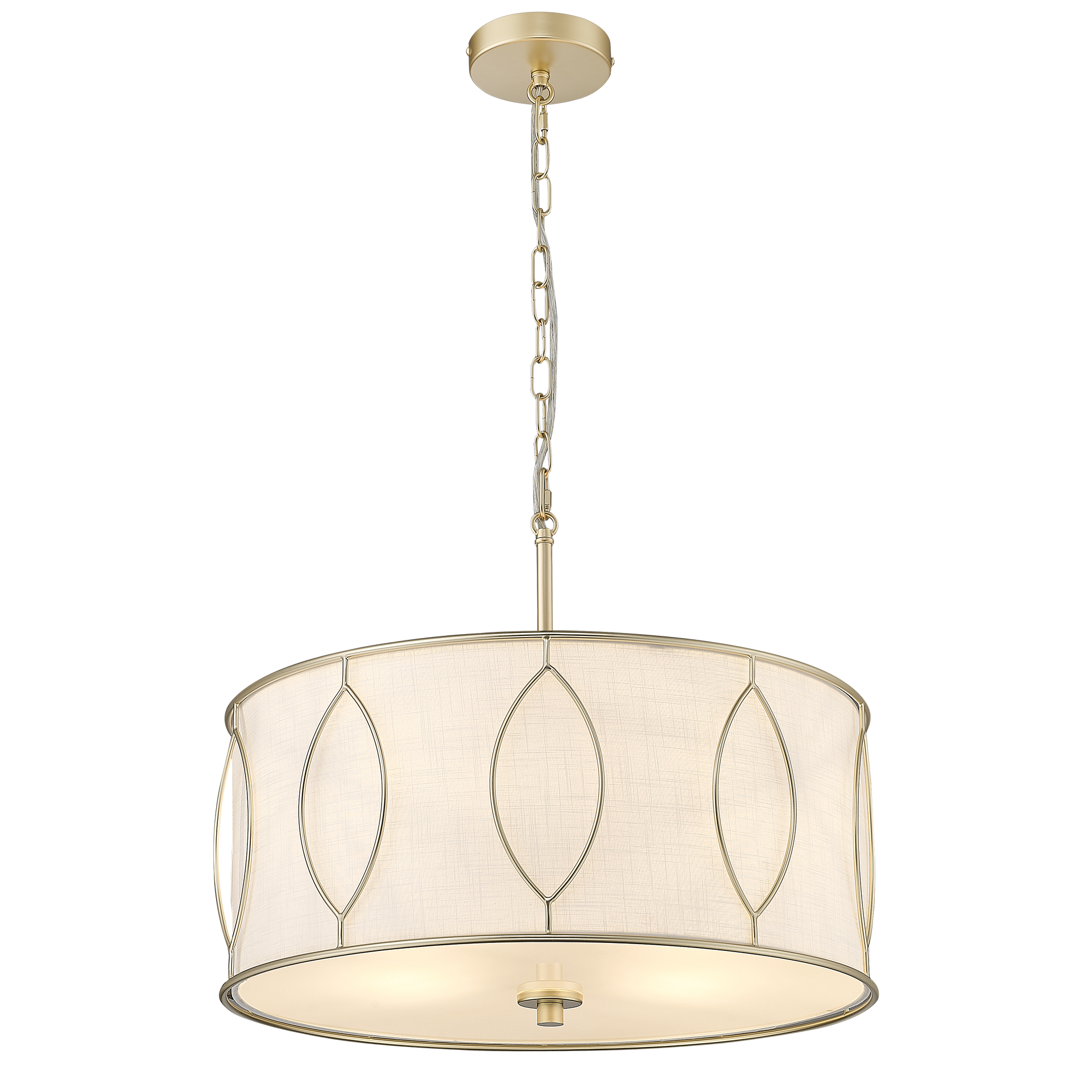Lampa wisząca NORFOLK P04576AM-WH to kwintesencja przytulnej elegancji w duchu modern classic. Połączenie stelaża w wykończeniu matowego złota z abażurem o wyraźnej, szlachetnej strukturze tkaniny nadaje wnętrzu ciepła i głębi. Całość dopełnia mleczna tafla szkła u dołu, która miękko rozprasza światło, ukrywając żarówki i zapewniając komfort wizualny.