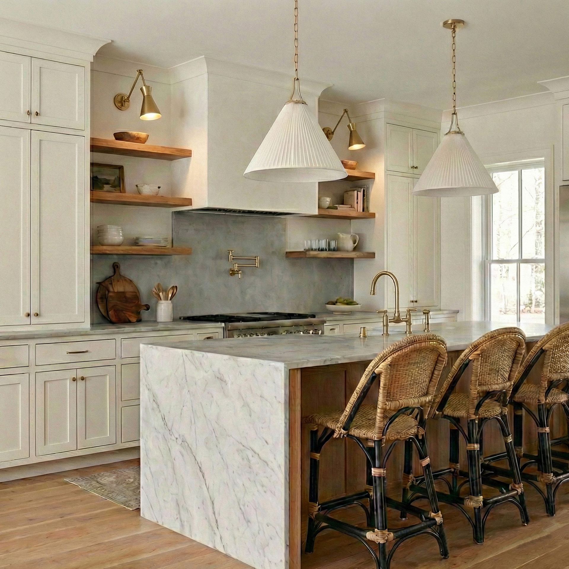 - Plisowany abażur: Szeroki, stożkowy klosz o gładkiej linii to główny element oprawy. Subtelne, pionowe plisy jasnej tkaniny nadają mu delikatnej struktury, a po zapaleniu światła materiał równomiernie i miękko rozświetla przestrzeń.