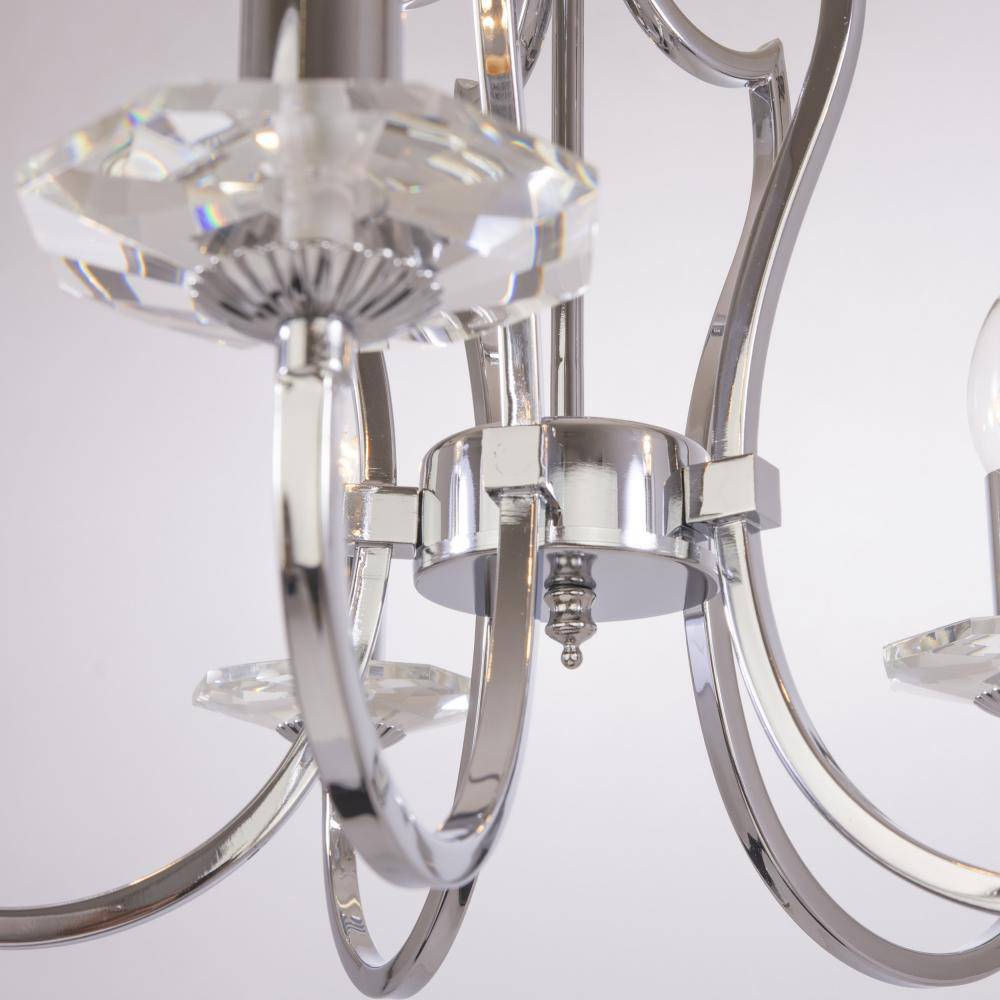 Seria lamp RIGA kształtem swoich ramion nawiązuje do kanciastych krawędzi marokańskiej koniczyny - symbolu stylu nowojorskiego. Elegancka lampa wisząca została pokryta chromem, a jego „świeczniki” zdobi kryształowe szkło. To wyjątkowa propozycja dla poszukujących produktów klasycznie pięknych, bez zbędnych ornamentów