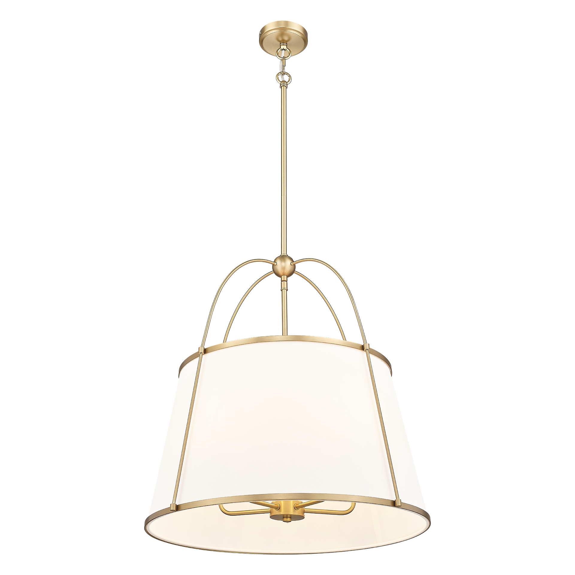 - Sztywne zawieszenie: Zastosowanie centralnego, mosiężnego pręta zamiast łańcucha podkreśla nowoczesny i czysty charakter lampy, zapewniając jej stabilną i elegancką prezencję.