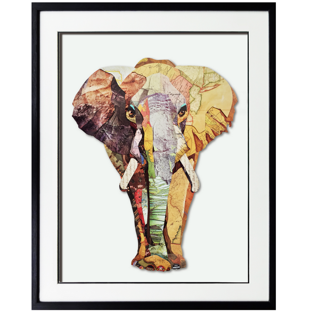 Nowoczesny obraz 3D przedstawiający wizerunek słonia. Wykonano go z elementów map świata, z wysokiej jakości materiałów. Ekspozycja słonia została umieszczona na białym tle, osłonięta grubym szkłem i drewnianą czarną ramą. To idealny prezent dla przyjaciół zwierząt czy osób uwielbiających podróże. Sprawdzi się w każdym wnętrzu w domu, biurze, restauracjach czy hotelach – stworzy przepiękną dekorację.