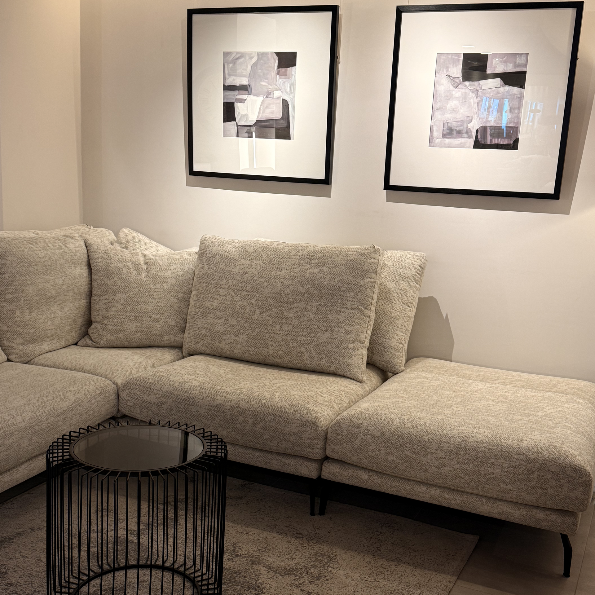 Harmonijnie współgra z aranżacjami: modern classic, soft glam, transitional, eleganckim nowojorskim. Najlepiej wygląda solo lub w duecie na ścianie w salonie i gabinecie.