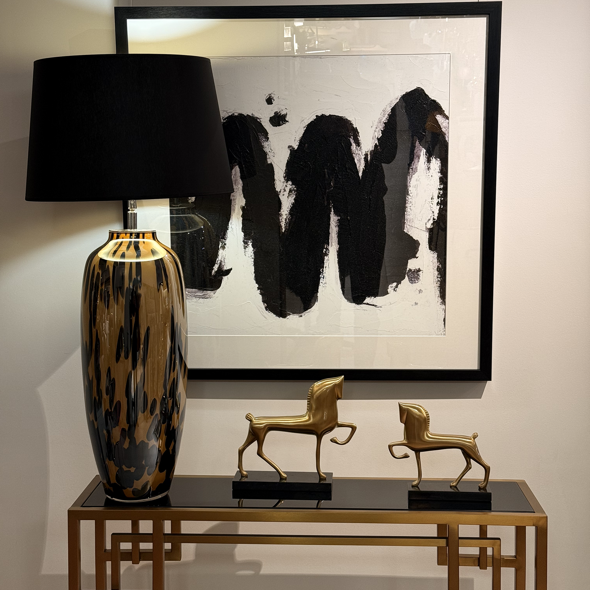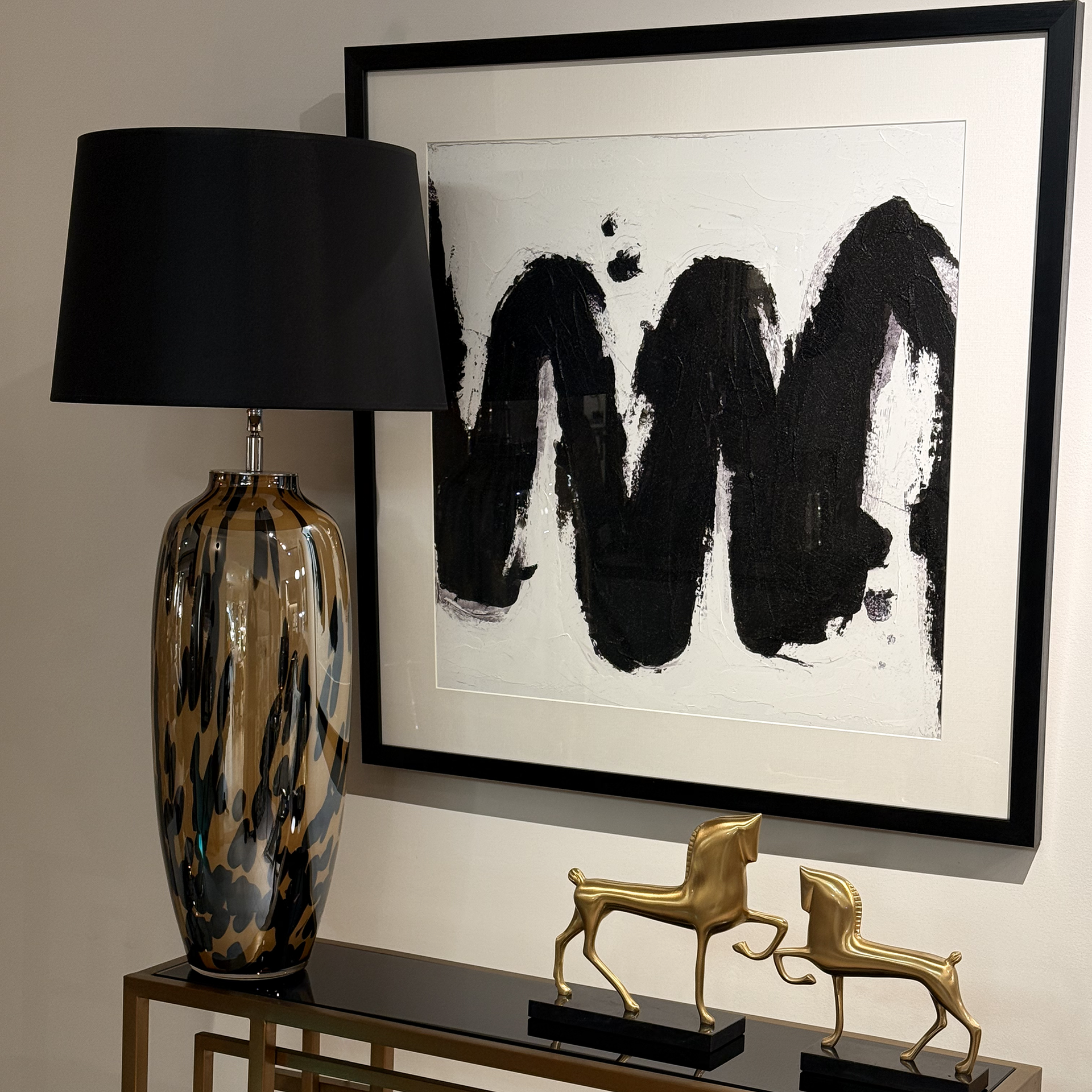 CREST to pulsująca fala pędzla — nowoczesny, graficzny znak. Propozycja do eleganckich, miękko zaaranżowanych przestrzeni — w rama w kolorze czarnym, z passe‑partout i szkłem.