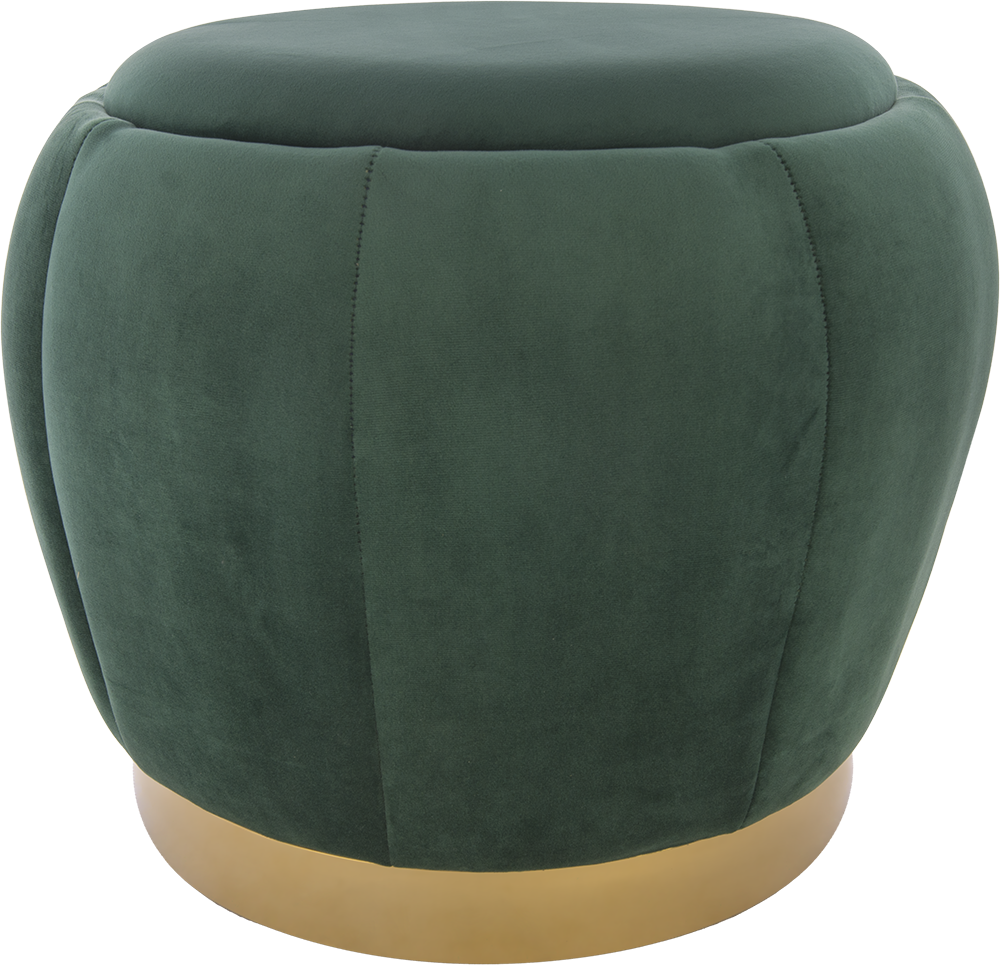 Puf VELVET to elegancki i praktyczny dodatek do naszych salonów czy sypialni. Puf o nieco cylindrycznym kształcie wykonany z wysokiej jakości weluru w kolorze leśnej zieleni. Podstawa metalowa wykończona w polerowanym złocie. Puf dostępna również w kolorze czarnym, królewskim granacie oraz pudrowym różu. Puf nie posiada pojemnika.