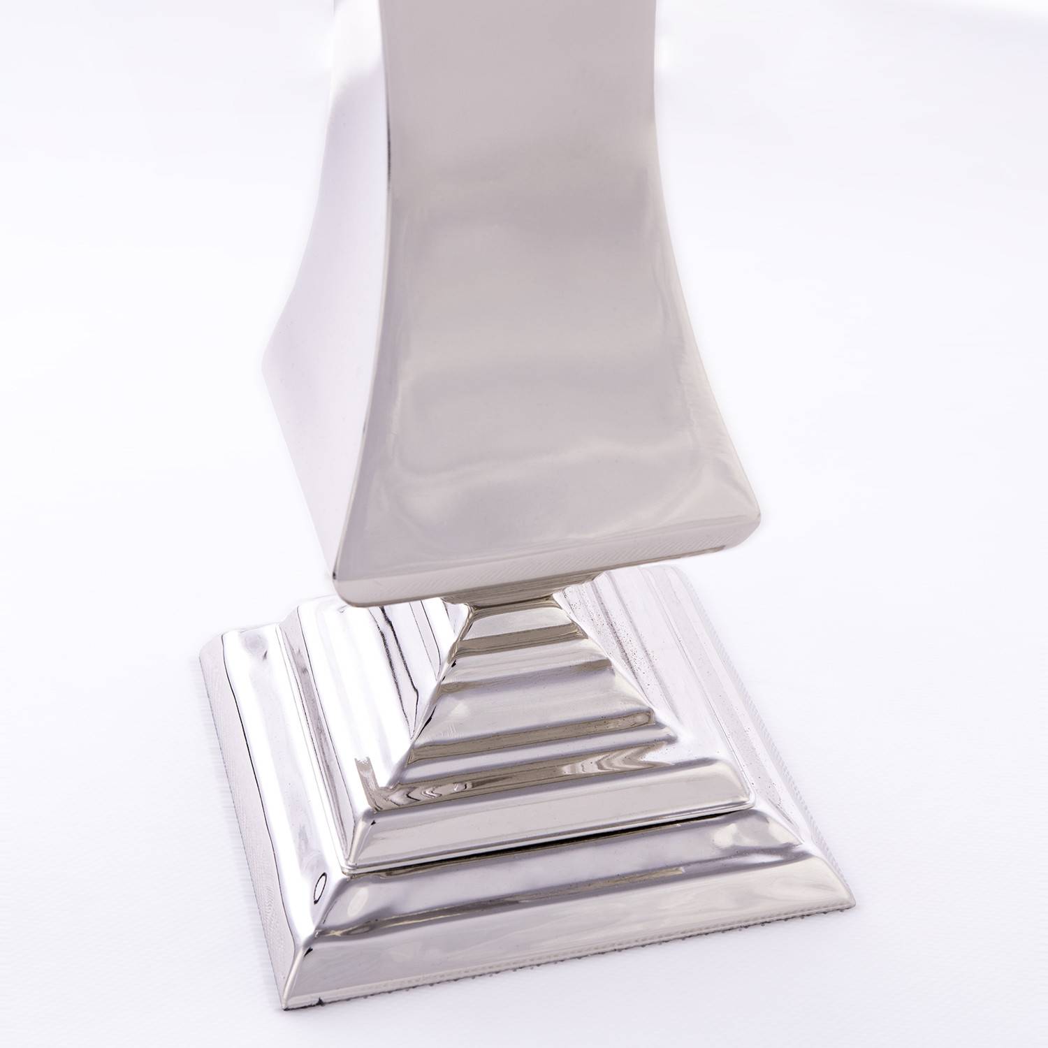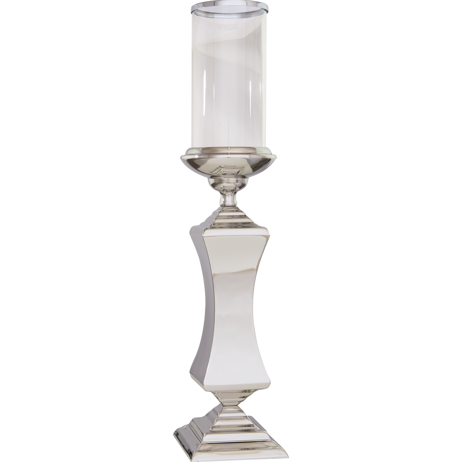 Świeczniki wykonane z metalu pokrytego polerowaną powłoką niklu, a szklane klosze zostały ozdobione niklowanym pierścieniem. Świecznik występuję w dwóch wielkościach.