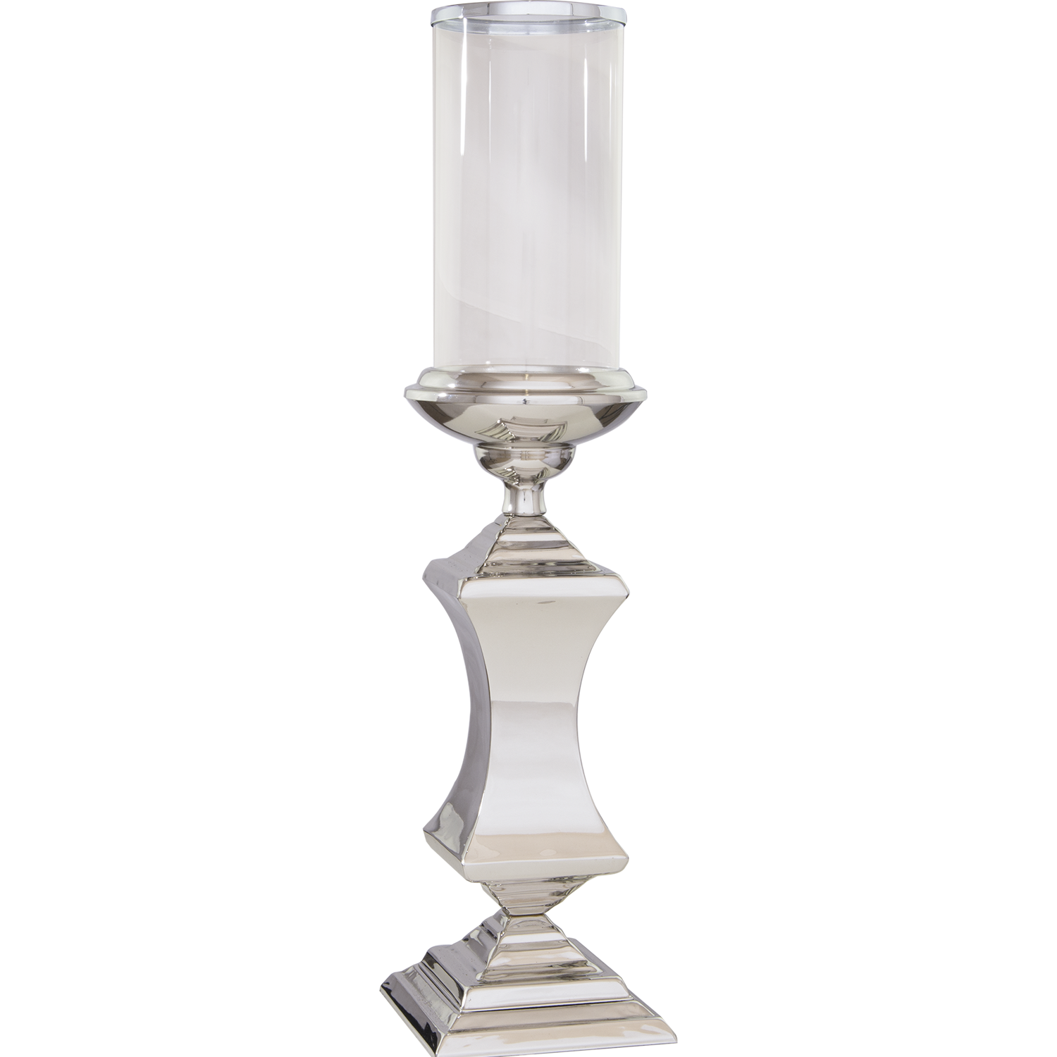 Świeczniki wykonane z metalu pokrytego polerowaną powłoką niklu, a szklane klosze zostały ozdobione niklowanym pierścieniem. Świecznik występuję w dwóch wielkościach.