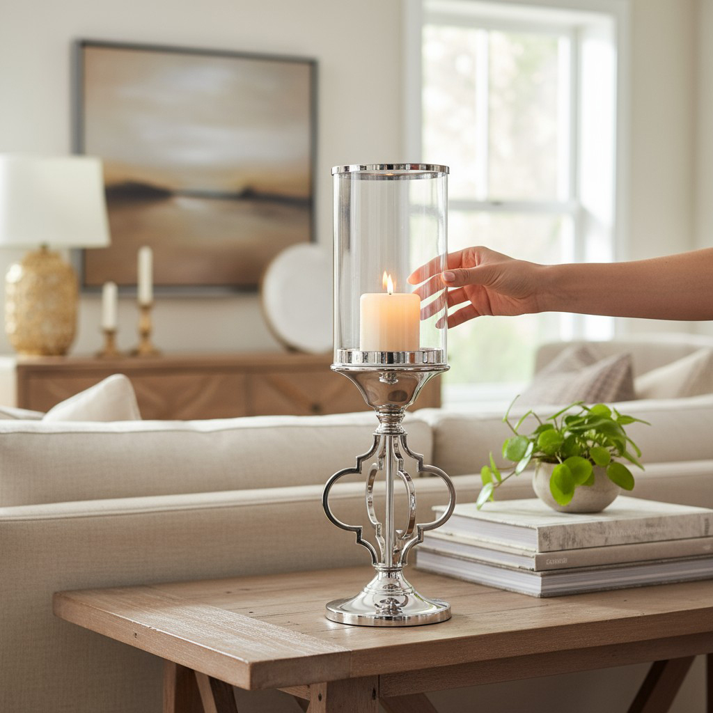 Seria Morocco to stylowe świeczniki utrzymane w stylu nowojorskim. Wyjątkowa podstawa świecznika w kształcie marokańskiej koniczyny wykonana jest z niklowanego metalu, szklana osłonka wykończona eleganckim pierścieniem.